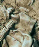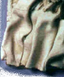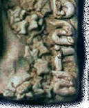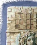 plaque The actual size of this piece is approximately 9" x12" with the highest relief about 2". Barbara is depicted sitting in front of a tower with 3 windows, holding a palm leaf; lightening is looming; a bird represents freedom and the scroll knowledge. Her name forms the balustrade. |